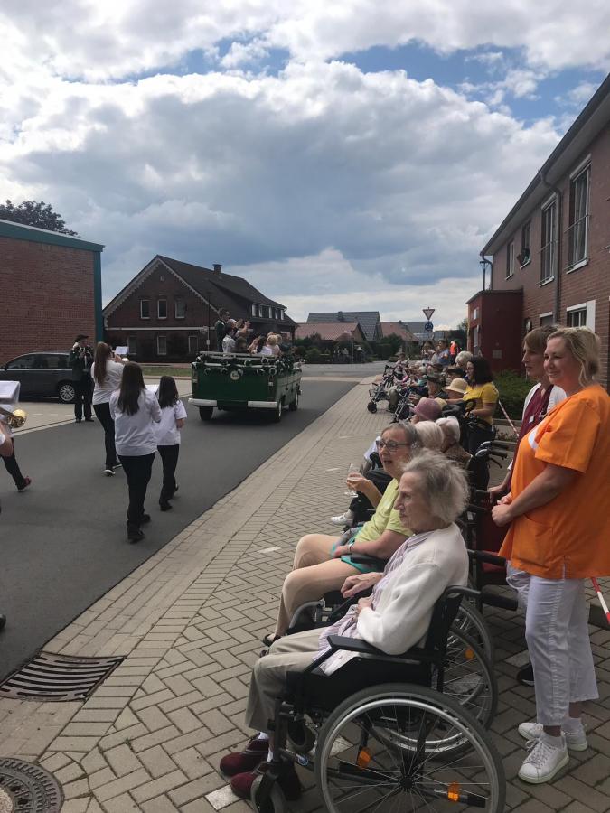 Musikalisch gab es eine Premiere beim Rehdener Fest: Der Lindenstedter Musikzug aus Bassum sorgte für die Marschmusik. Sowohl Präsident Thomas Nowak als auch sein Stellvertreter Tobias Winkelmann-Bünte und das Schützenvolk waren von der Leistung des Spielmannszugs begeistert.