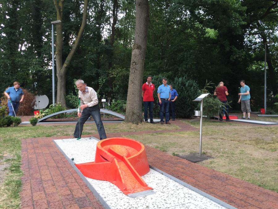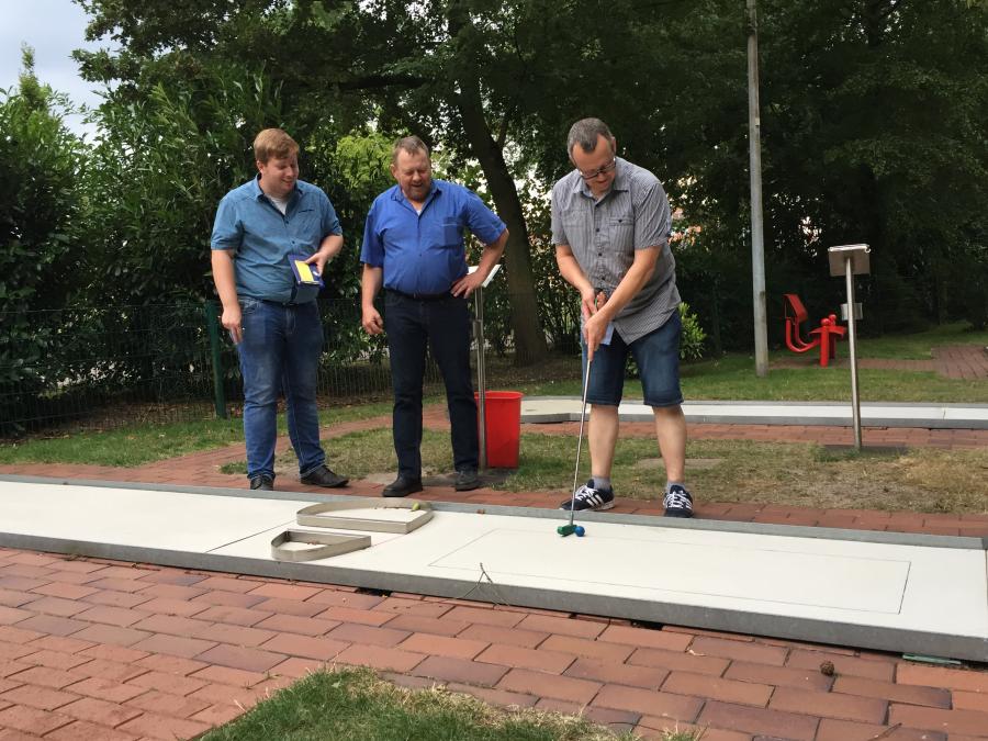 Danach haben wir die super gepflegte Minigolfanlage im Müntepark besucht. Die gesamte 18-Loch-Anlage wurde von uns allen bespielt. Wir wurden durch ein kurzes Regenschauer unterbrochen, als Schutz stand uns ein Gartenzelt zur Verfügung.