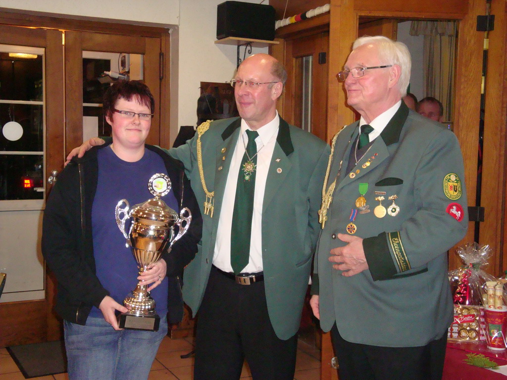 Als Highlight an diesem Tag stand die Entscheidung um den von Ehrenpräsident Wilhelm Evers gestifteten Vereinspokal aus. Hier hatten gleich mehrere Schützen im Laufe des Jahres 119 Ringe erzielt. In einen hart umkämpften Stechen siegte am Ende Melanie Gottwald und verwies somit Ralf Bünte, Johannes Lowak, Thomas Nowak auf die folgenden Plätze.