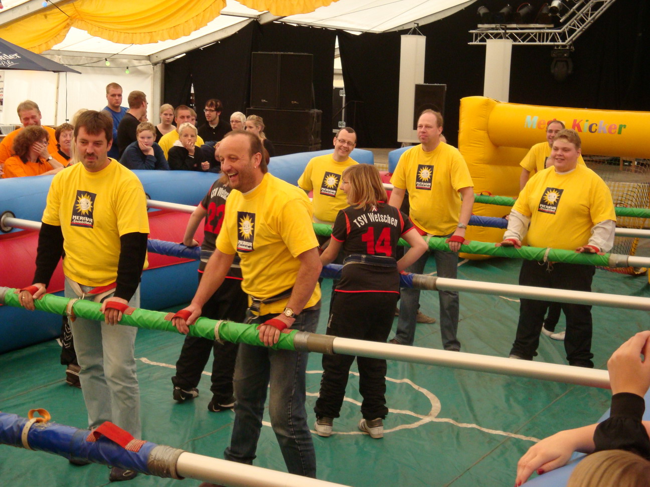 Der Samstagvormittag begann mit dem beliebten Menschenkicker-Turnier. Der Schützenverein konnte drei Mannschaften (Kinder, Jugendliche und Erwachsene) in`s Rennen schicken.