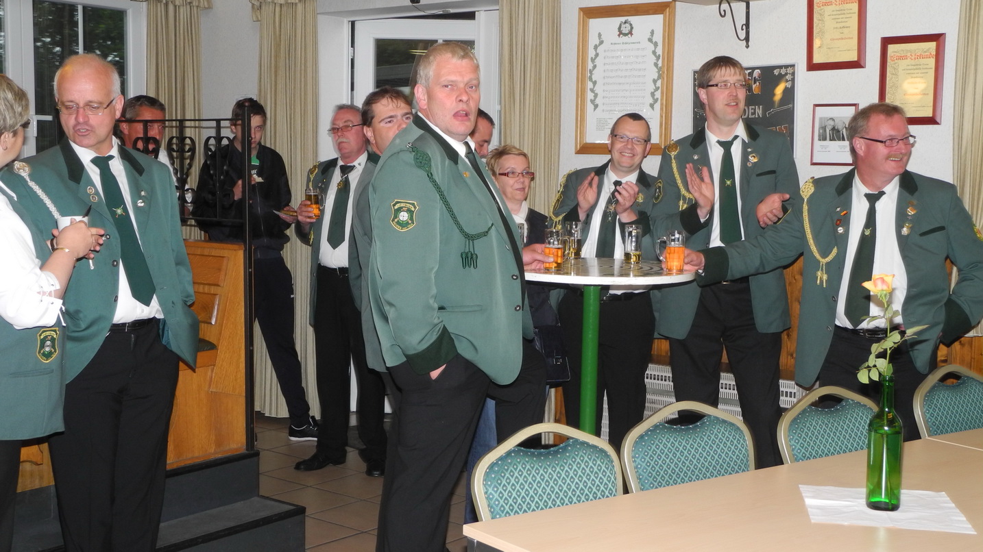 Schützenpräsident Thomas Nowak, Ihre Majestäten und der Vorstand erfreuten sich an der Vielzahl der Schützinnen und Schützen die den Weg ins Schützenhaus gefunden haben, um wieder einmal ein paar gesellige Stunden mit einander zu verbringen.