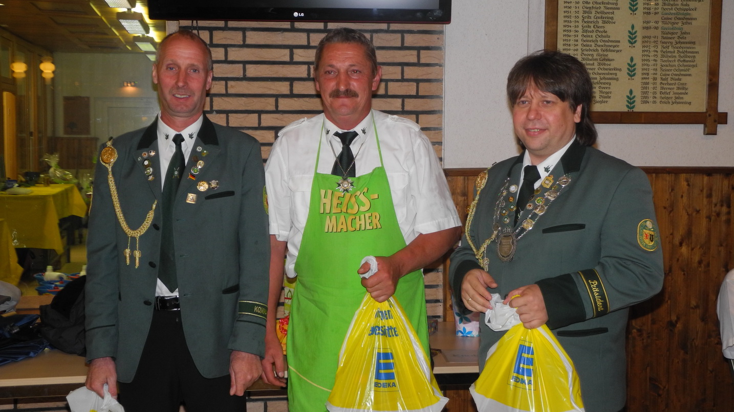Als letztes wurde dann die Siegerehrung vom Glücksschießen durchgeführt. Hier konnte sich Klaus Bollhorst über einen Prall gefüllten Präsentkorb freuen. Die folgenden Plätze belegten Klaus Weghöft und Heinz Pohl.