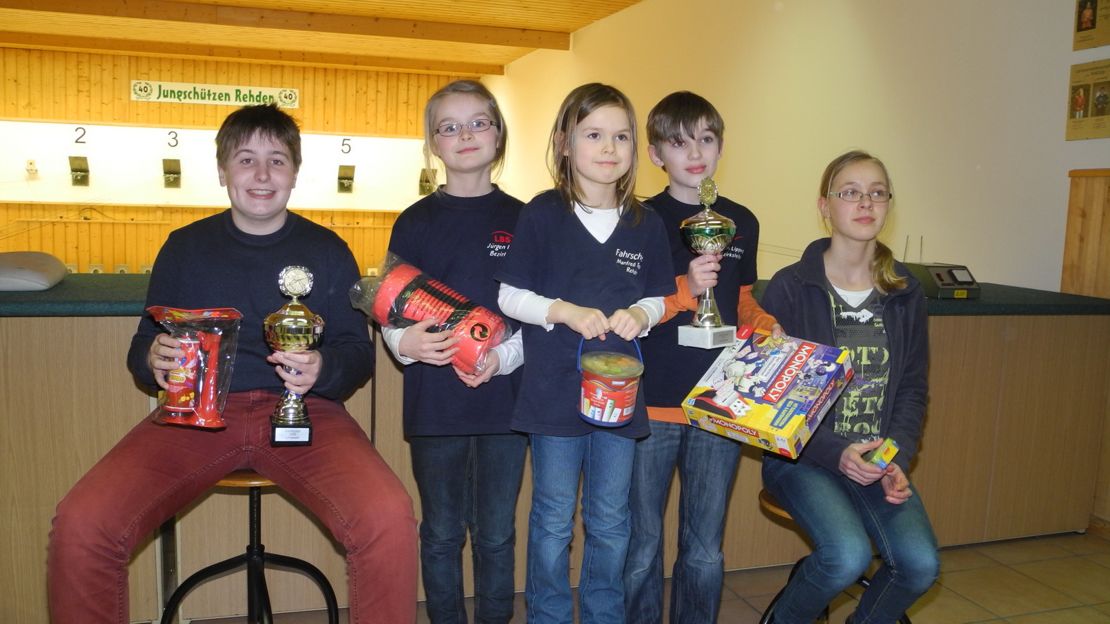 Zeitgleich mit den Erwachsenen starteten auch die jüngsten Schützen des Vereins mit ihren Wettbewerben. Das Lasergewehr Pokalschießen gewann Erik Mayer vor Johanna Grewe und Laura Grewe. Beim Lasergewehr Preisschießen hatte Johanna Grewe das sicherste Auge und verwies Erik Mayer und Laura Grewe auf die folgenden Plätze. Auch mit dem Luftgewehr wurde an diesem Tag geschossen.