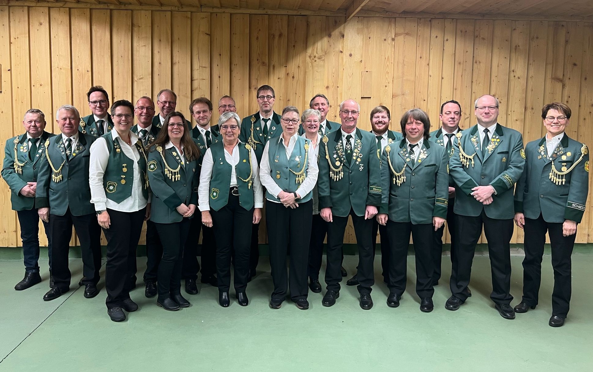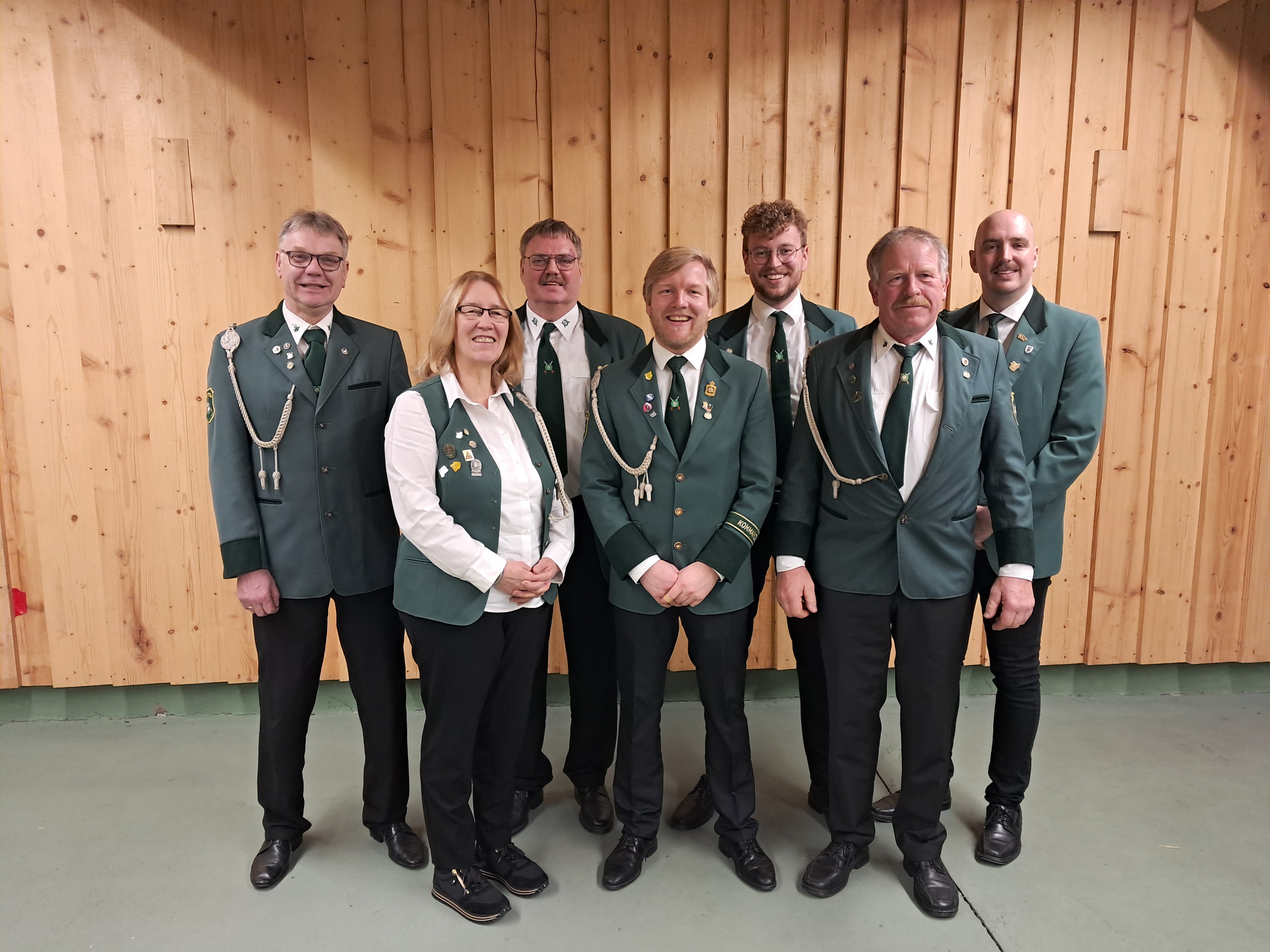 Als weiteren Punkt standen Wahlen auf der Tagesordnung. Wiedergewählt wurden der Vizepräsident Tobias Winkelmann-Bünte, der 2. Kassenwart Jannis Bünte, die 2. Schießwartin Doris Hülsmann, der 4. Schießwart Phillip Kenneweg und die 2. Jugendwartin Johanna Grewe.